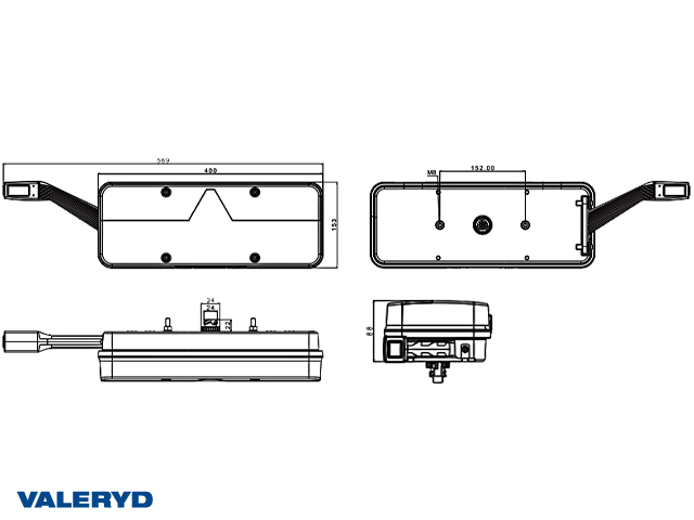 Baklampa Valeryd Kingpoint Vä 569x153x88mm 12-36V 7-funktionella, LED Breddmarkering, AMP kontakt