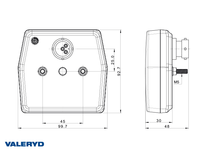 LED Positionsljus Valeryd 96x42x33 röd reflex med fäste CC=86mm, 12-30V inkl. 450mm kabel