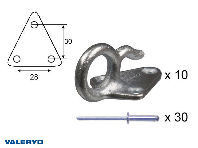 Fästkrok metall till lastnät med popnit (10-pack)