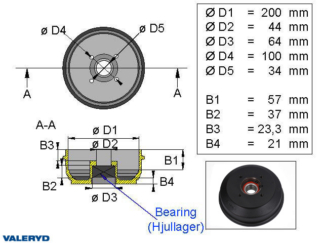 Hjullagersats kompakt 39x72x37 vattenavvisande passar till Knott/Nieper/Schlegl 250×40, till 1 hjul