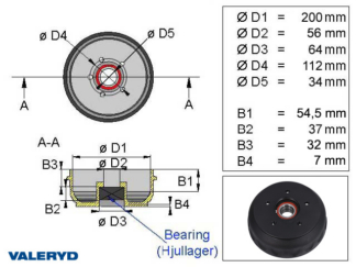 Bromstrumma 200×50 5×112 passar till BPW S2005-7 1350 kg Kompaktlager