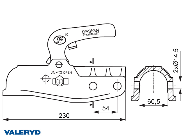 Kulkoppling 3500kg, Ø60,5mm rör, horisontell hålbild
