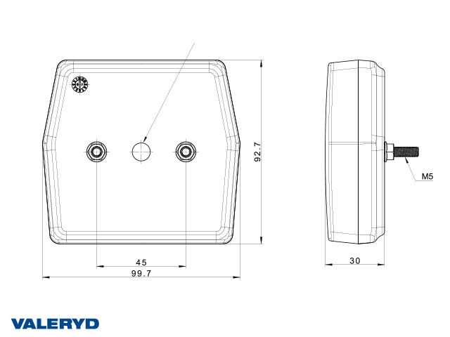 LED Dimljuslampa Valeryd 99,7×92,7x30mm kabel 1m, 2 x M5 skruvanslutning, CC=45mm