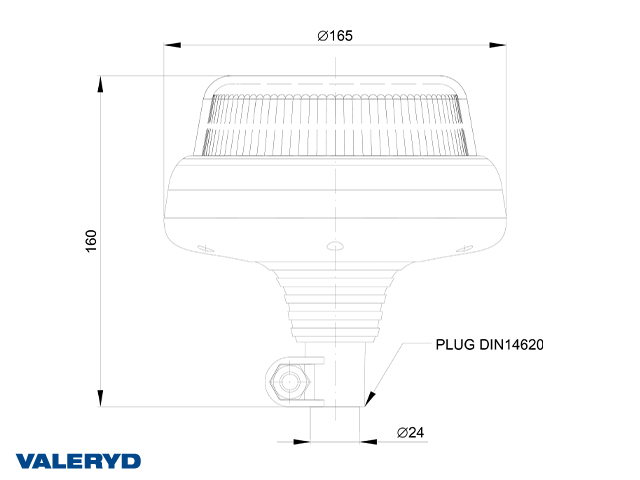 LED Roterande varningsljus Valeryd Ø145x204mm DIN 14620 12-36V inkl. Kabel