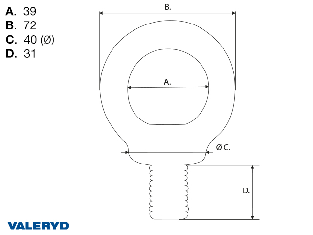 Lyftögleskruv, DIN580, WLL 1200Kg, M20