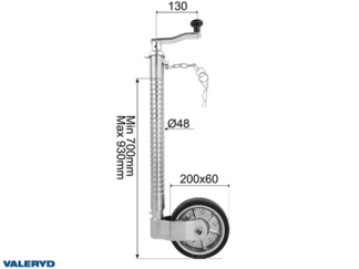 Stödhjul SS Ø48mm Stålfälg Fullgummihjul 200x60mm Belastning 200 Kg