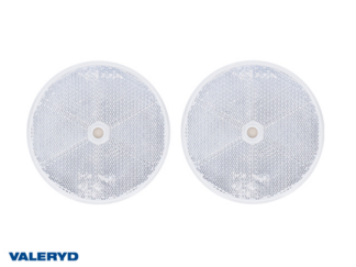 Rund reflex 80mm Vit självhäftande och skruvhål (2-pack)