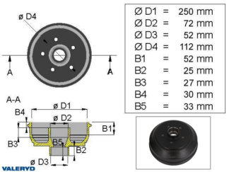 Bromstrumma 250×40 5×112 BPW S2504 1600kg mm-lager