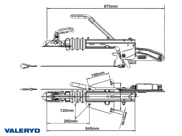 Påskjutsbroms Knott, V. KF20-A, utf. GF, 1100-2000 kg med konsol för stödhjul