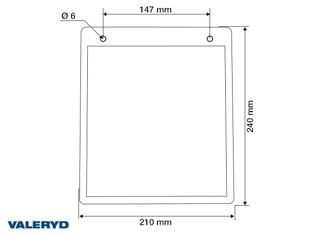 BxH 21×24 cm, Bulthål 6mm, CC 147mm. Svart gummi