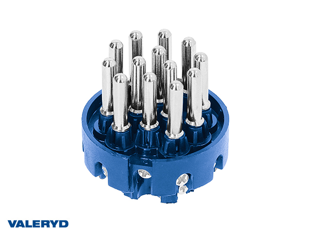 13-polig släpvagnskontakt i hållbar design med förzinkade kontaktytor som säkerställer en pålitlig anslutning.